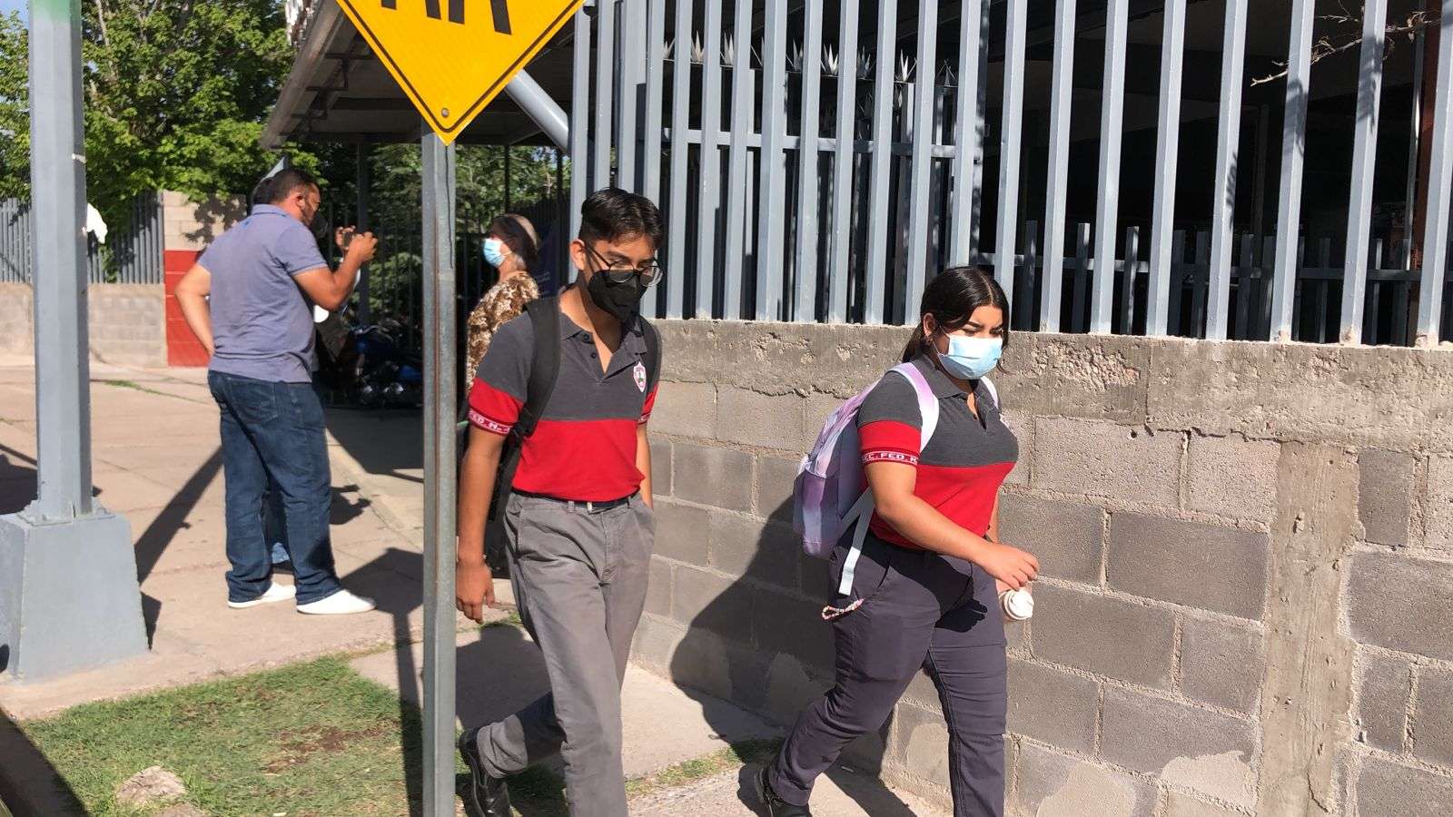 Noticias de Chihuahua. – Esta mañana decenas de estudiantes de la secundaria Federal 4 María Curiel ubicada en el Palomar fueron regresados a sus viviendas, esto luego de que se diera a conocer sobre la presencia de un caso COVID.