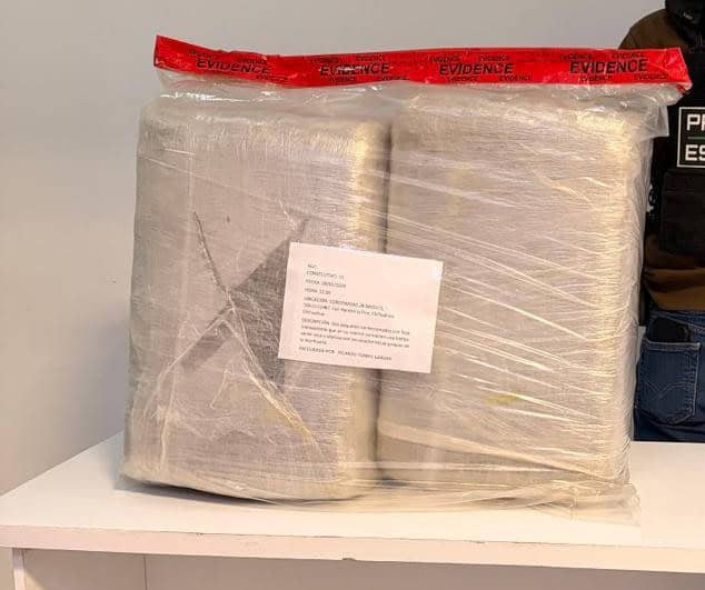 Fueron dos paquetes confeccionados con fleje transparente, con un contenido similar que en conjunto dieron el peso total de 19 kilogramos.