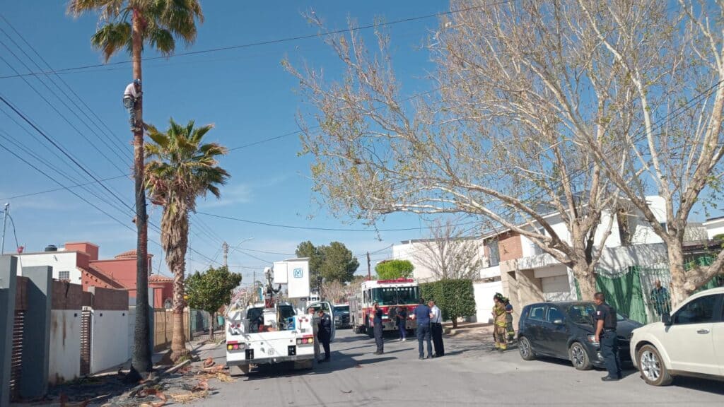 Chihuahua, Chih.- Lo que parecía un día normal de poda terminó con Manuel colgado de los cables y una palmera en llamas en la intersección de República de Cuba y Antonio de Montes, en la colonia Panamericana.