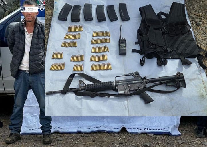 Noticias de Chihuahua. – Un hombre fue detenido con un fusil de asalto y 142 cartuchos, en la población de Guachochi.