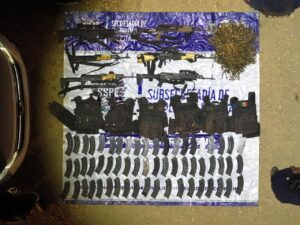 Al realizar la inspección correspondiente, se les aseguraron 6 fusiles de asalto, mil 770 cartuchos útiles, 60 cargadores y 6 chalecos tácticos.