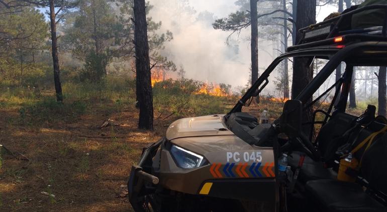 Madera, Chih.- El fuego sigue dando batalla en la sierra de Madera, y más de 200 brigadistas no han tenido descanso para contener los incendios forestales que amenazan la región. Con el viento complicando las cosas, equipos de CONAFOR, SEDENA y Protección Civil se han desplegado en varios puntos estratégicos para evitar que las llamas sigan avanzando.
