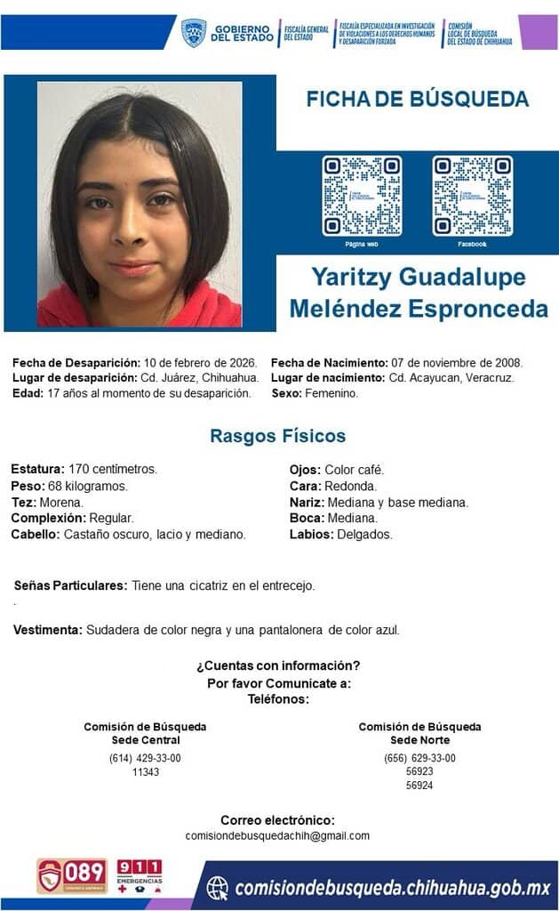 Noticias de Ciudad Juárez. – Dos menores de edad, originarias de Veracruz y de Bogotá, Colombia, tienen seis días que desaparecieron en esta ciudad.