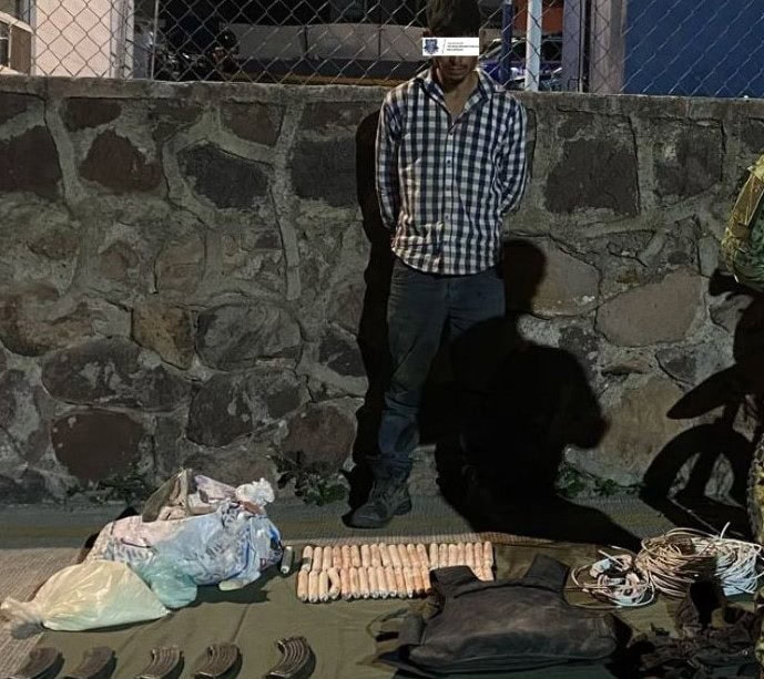Noticias de Chihuahua. – Everardo G. T., alias El Basaseachi, fue detenido en Moris en posesión de 43 paquetes de explosivos, cargadores para fusil de asalto, así como una moto robada.