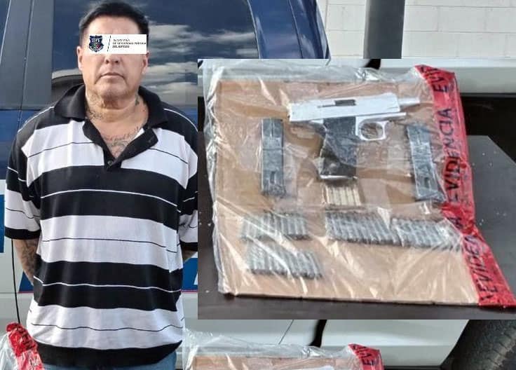 Noticias de Chihuahua. – Agentes de la policía estatal detuvieron a Raúl Alberto V. C., en la colonia Portal del Real, luego de que le encontraron una pistola, dos cargadores y 40 cartuchos.