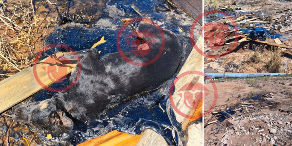 Por medio de las cámaras de video vigilancia, que presentó la Fiscalía General del Estado, se logró observar a los caninos corriendo por el terreno y de manera accidental entrar al charco de chapopote, donde terminaron llenos de material, con las consecuencias que ya se conocen.