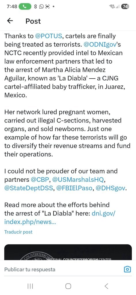 De acuerdo con el NCTC, “La Diabla” encabezaba una red dedicada al tráfico de bebés y a prácticas ilegales de cesáreas para comercializar recién nacidos hasta en 250 mil pesos. El organismo estadounidense detalló que la mujer también participaba en la extracción de órganos de las madres y en la venta de los niños en Estados Unidos.