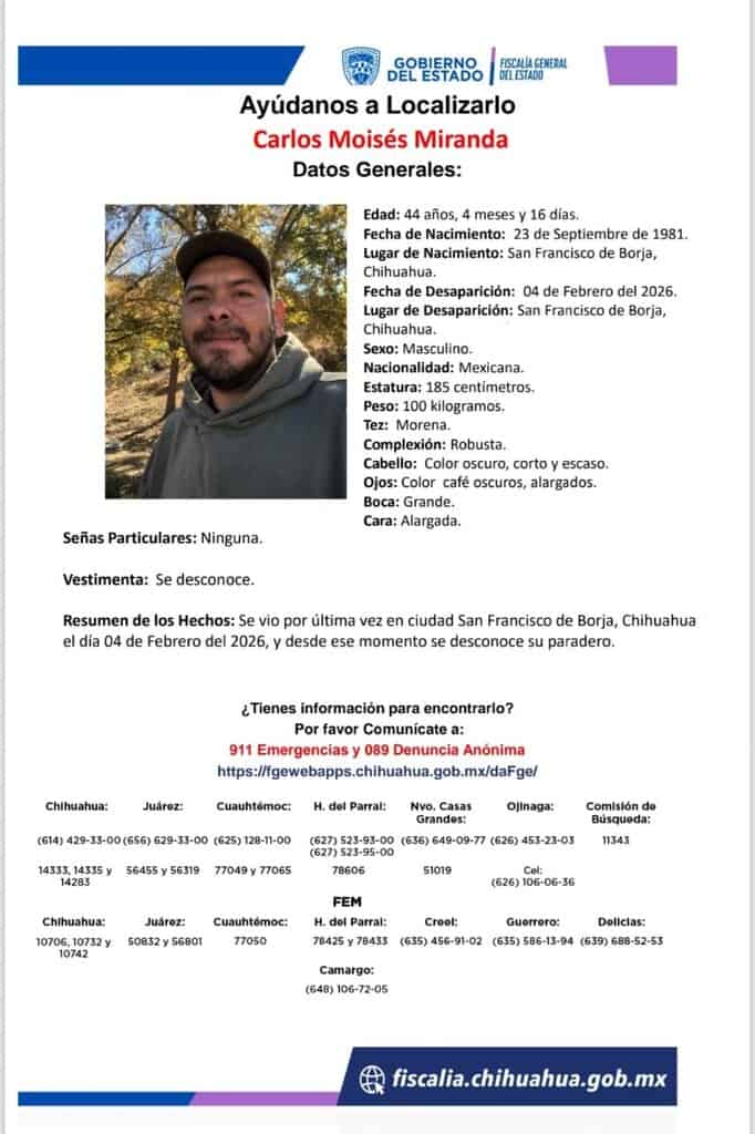 Noticias de Chihuahua. – Dos hombres fueron reportados desaparecidos, luego de que presuntamente los privaron de la libertad, en el municipio de San Francisco de Borja, el pasado 4 de febrero.