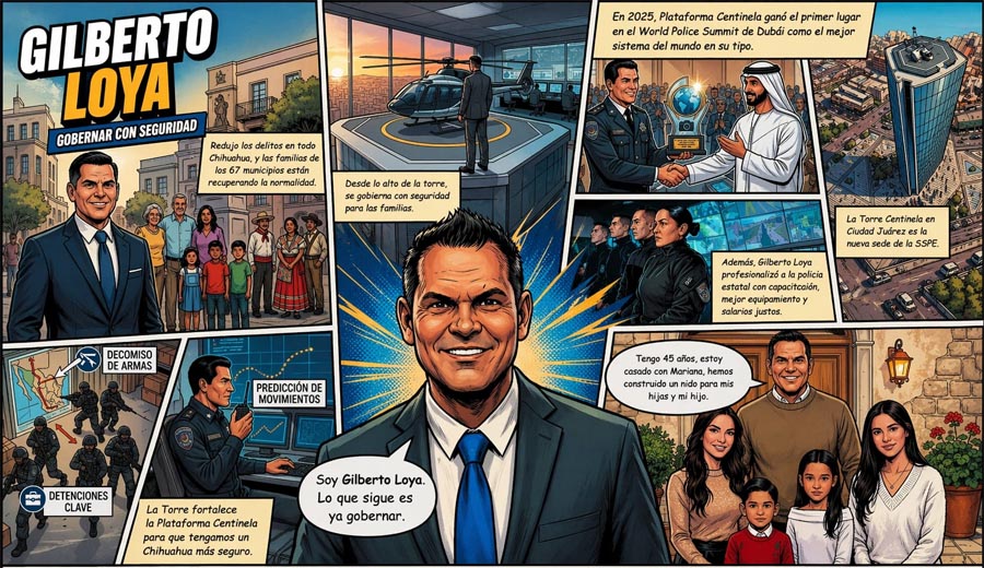 Pero el método llama la atención. Su vida convertida en cómic. Una estrategia que mezcla storytelling, propaganda y cercanía emocional, donde se presenta como un personaje que supera adversidades, desde la muerte de su padre hasta su ascenso en las filas de seguridad pública.