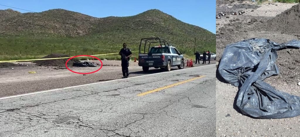 Noticias de Chihuahua. –Dentro de hule color negro, amarrado como tamal, fue localizado un muerto esta mañana, en la carretera que va de Aldama a Ojinaga.