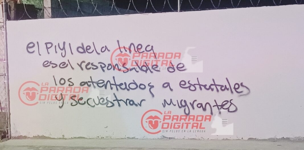 En la pared el mensaje decía: El Piyi de La Línea es el responsable de los atentados a estatales y secuestrar migrantes.