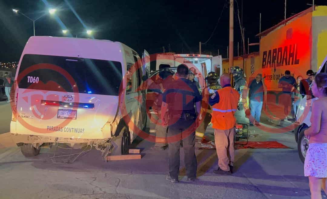El accidente se dio entre una camioneta tipo Van de transporte la cual fue impactada por un automóvil a la altura de la calle Francisco Portillo.