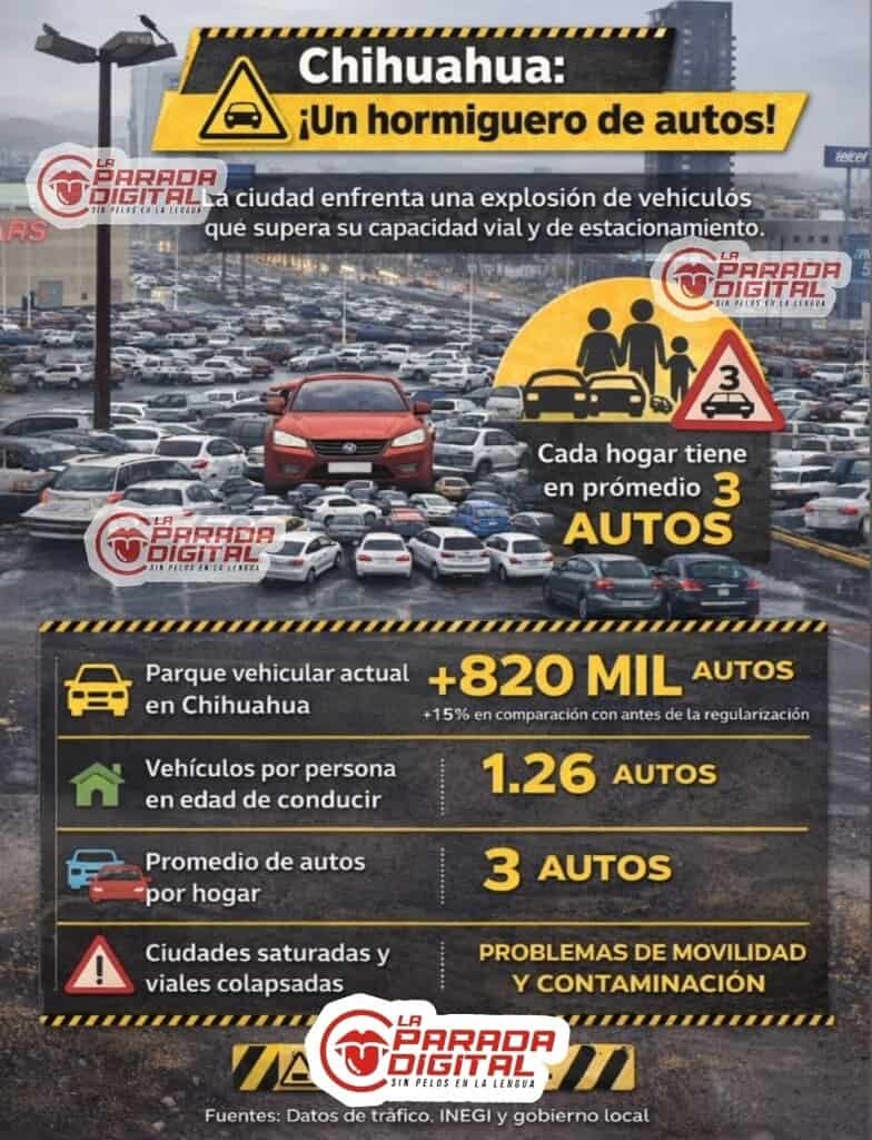 Noticias de Chihuahua.- Chihuahua enfrenta una explosión de autos que supera la capacidad de sus vialidades y espacios públicos.