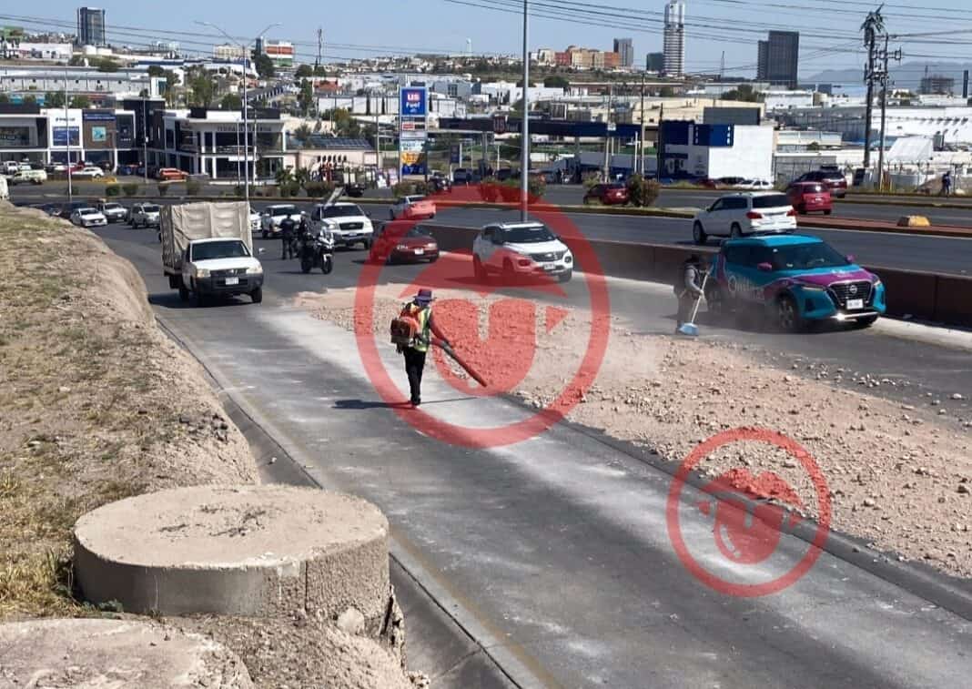 El material quedó regado a lo largo de varios metros, obligando a los automovilistas a reducir la velocidad y generando un importante congestionamiento vial en la zona.