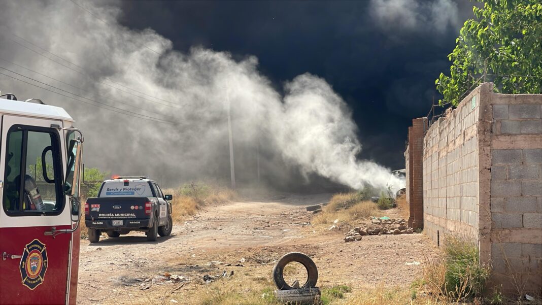 Noticias de Chihuahua.- Una densa columna de humo negro, visible desde prácticamente cualquier punto de la capital, alertó esta tarde a los cuerpos de emergencia por un voraz incendio de neumáticos en las inmediaciones de la colonia Granjas del Valle, al norte de la ciudad.