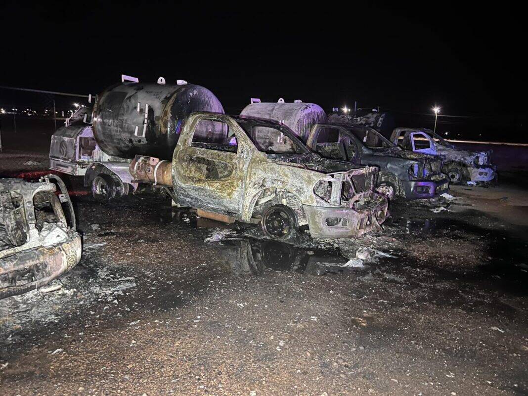 Noticias de Chihuahua. – Una bomba molotov fue lo que probablemente inició el incendio en una gasera de Aldama que causó pánico, desalojo de cientos de personas y dañó siete pipas, esta madrugada.