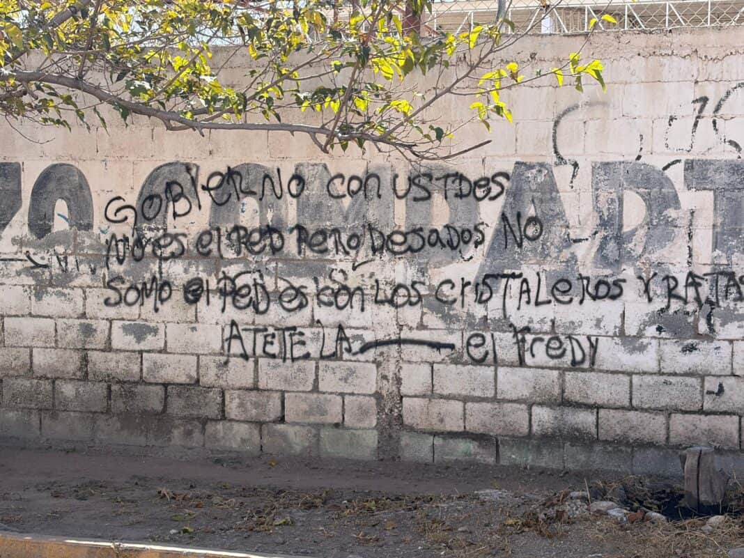 El mensaje, realizado con pintura en aerosol color negro, apareció firmado presuntamente por un grupo antagónico, lo que encendió alertas entre las corporaciones de seguridad.