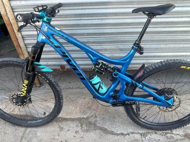 La bicicleta es de la marca Mullet Pivot Mach 5.5 01 Pro, color azul, con un valor aproximado de 65 mil pesos.
