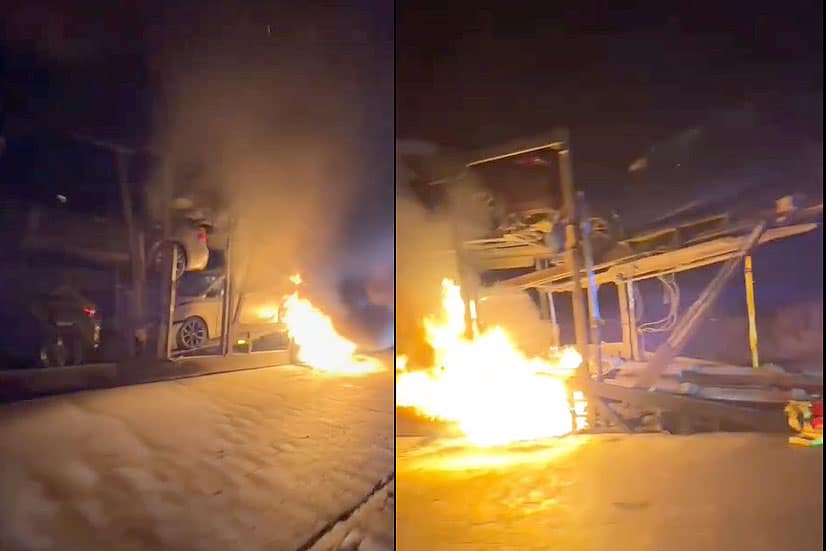 Al parecer fueron las llantas del remolque las que se incendiaron causando daños a los vehículos.