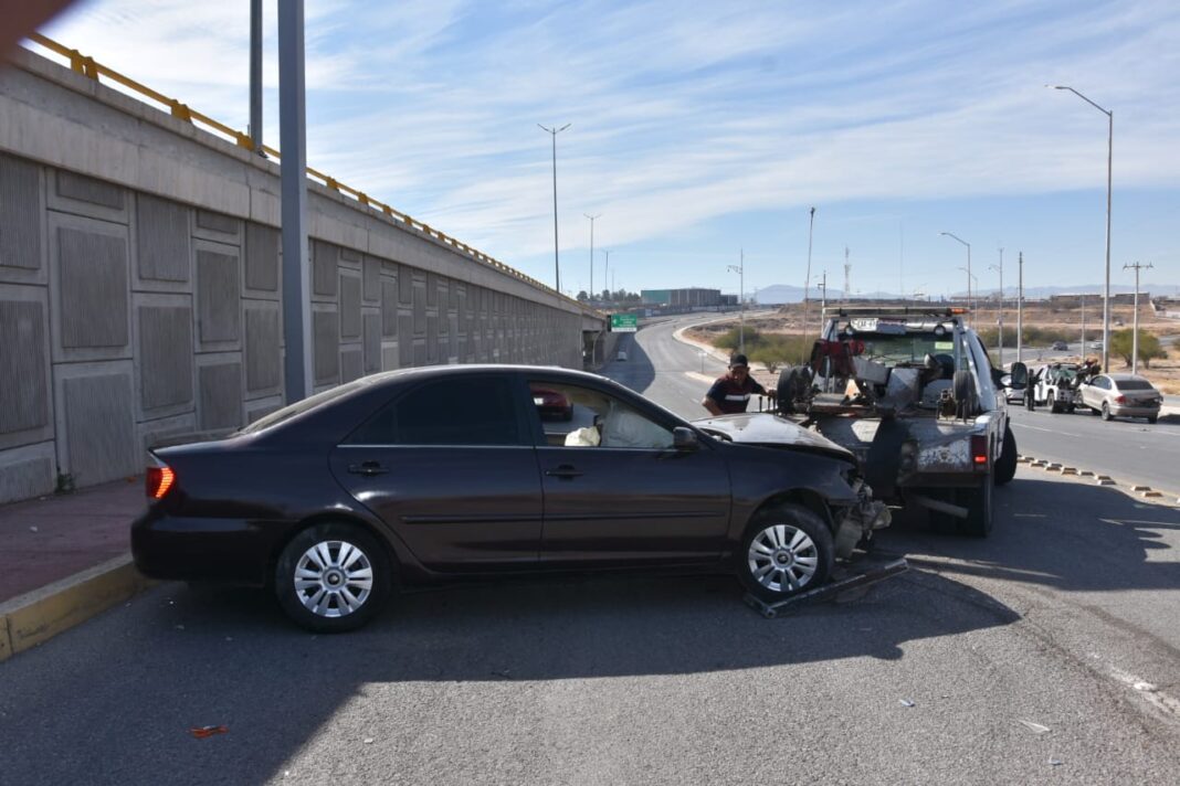 Noticias de Chihuahua. – Un choque ocurrió esta tarde en el Periférico Francisco R. Almada y calle Zoología, donde dos autos quedaron dañados.