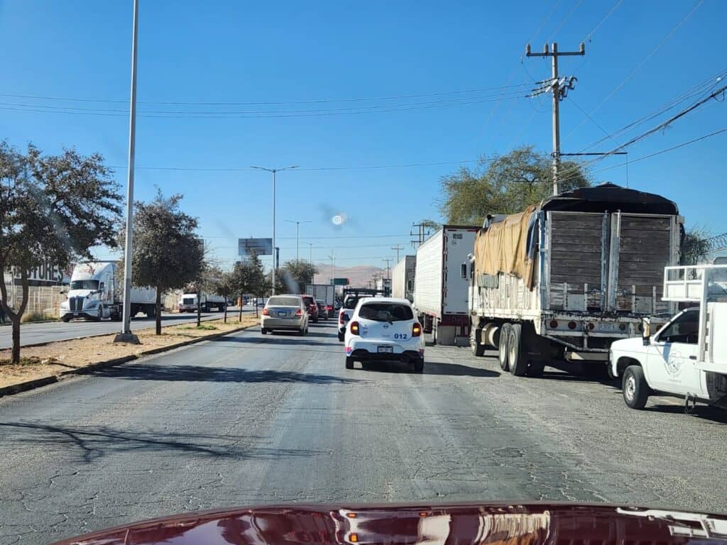 Según el reporte, los tráilers utilizan el carril de la extrema derecha como estacionamiento o zona de espera, lo que reduce la capacidad de la avenida y genera un cuello de botella que deriva en caos vehicular durante las horas pico.