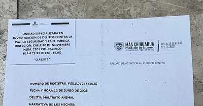 Con el mensaje se publicaron algunas fotos de los canes encerrados, así como de la denuncia penal que presentaron ante la Fiscalía del Estado, en la Unidad Especializada en Investigación de Delitos contra la Paz, la Seguridad y la Fe Pública.