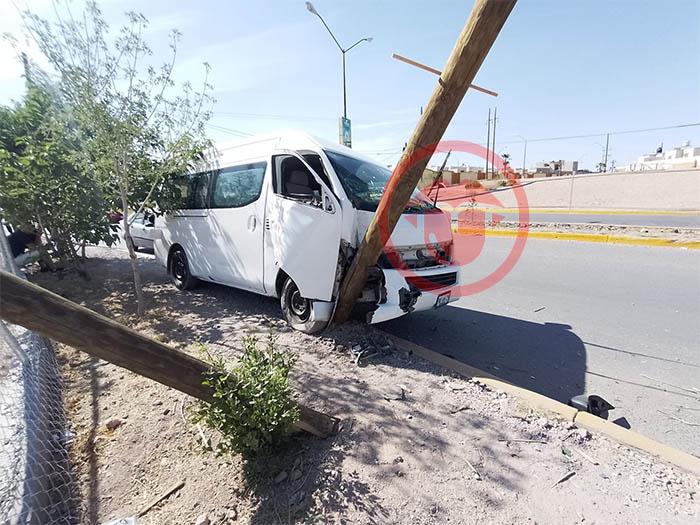 Noticias de Chihuahua.- Un poste de madera se incrusto en una camioneta de transporte de personal tras un fuerte choque al sur de la ciudad.