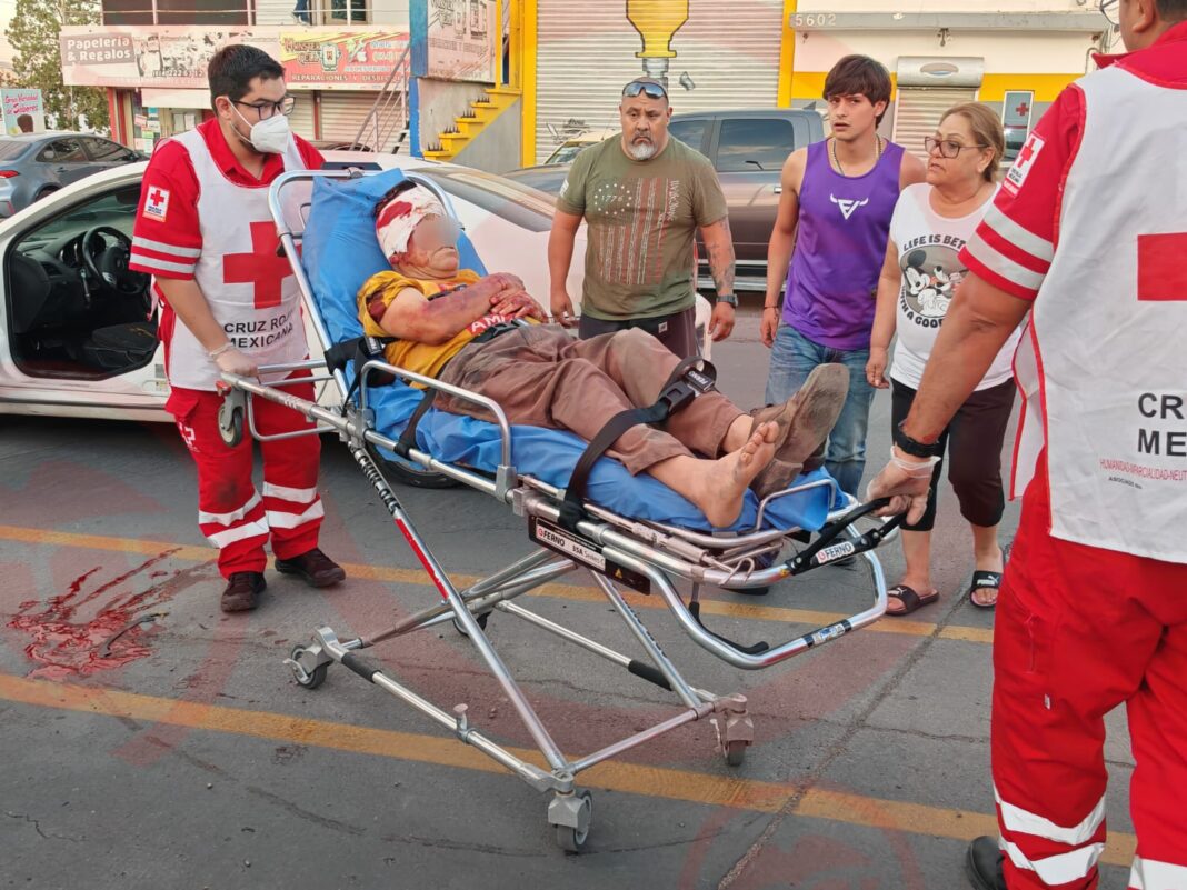 Noticias de Chihuahua.- Un adulto mayor terminó con una herida de consideración en la cabeza y tendido sobre el pavimento, luego de ser arrollado por un vehículo “fantasma” esta tarde en las inmediaciones de la colonia Cerro de la Cruz, movilizando a los cuerpos de emergencia y a los vecinos que no lo dejaron solo.