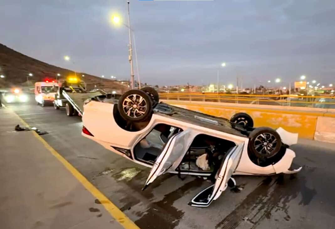 Noticias de Chihuahua. – Una pareja resultó lesionada esta mañana cuando el auto en el que se trasladaban volcó en la gaza de la prolongación de la avenida 20 de Noviembre y periférico Lombardo Toledano.